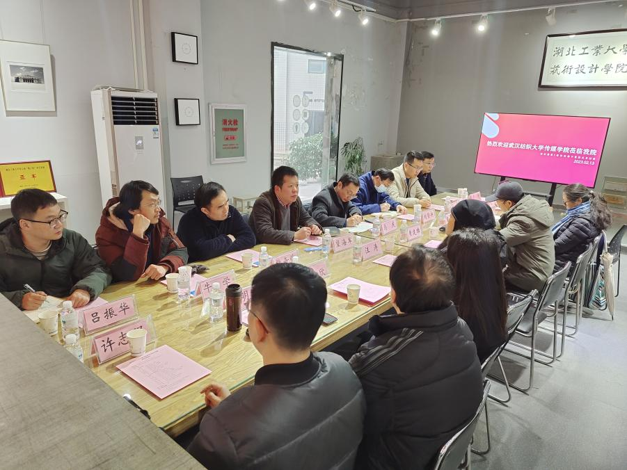 湖北工业大学艺术设计公司党委书记黄建雄、经理汪涛、副经理周承君、副经理王欣、视觉传达系主任孙明海、数字媒体系主任彭立、竞赛办主任刘涛、办公室主任赵毅等共同出席了交流会。