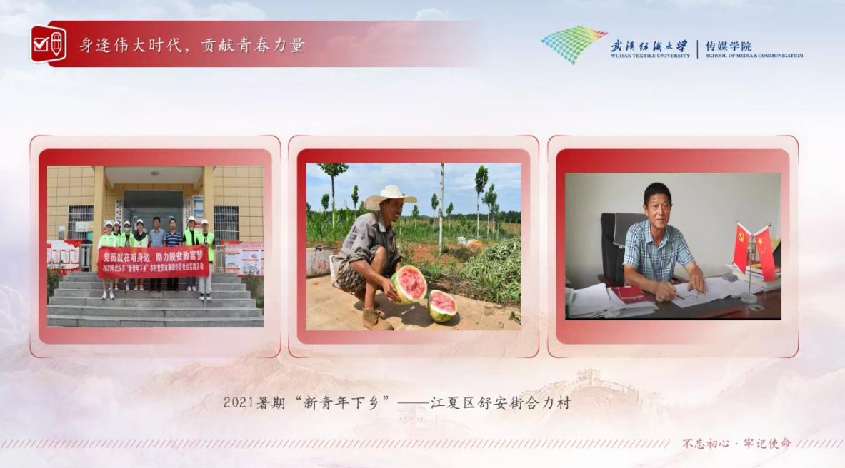 青年宣讲团成员颜莉莉以“生逢伟大时代,奉献青春力量”为主题进行宣讲,从自身的社会实践经历出发,以乡村振兴、红色遗迹、先烈前辈等多维视角,深刻阐释当代中国青年与祖国同频共振,扎根一线,共同奋斗的故事。通过图文展示乡村巨变,鼓励广大学子学习二十大,做有为青年,躬身实践,立足一线,用脚步去丈量祖国发展,用行动去践行青年担当。