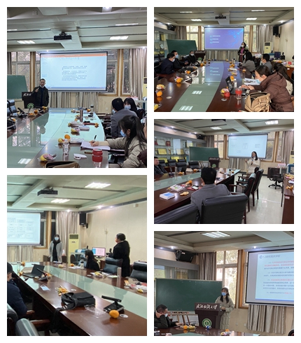 会上,贾梦梦、郑湛、熊蕾、王慧、马庆、窦瑞晴、马旭等十余位教师分别就自己的选题特色、创新、价值和可行性等方面作了经验分享和交流。