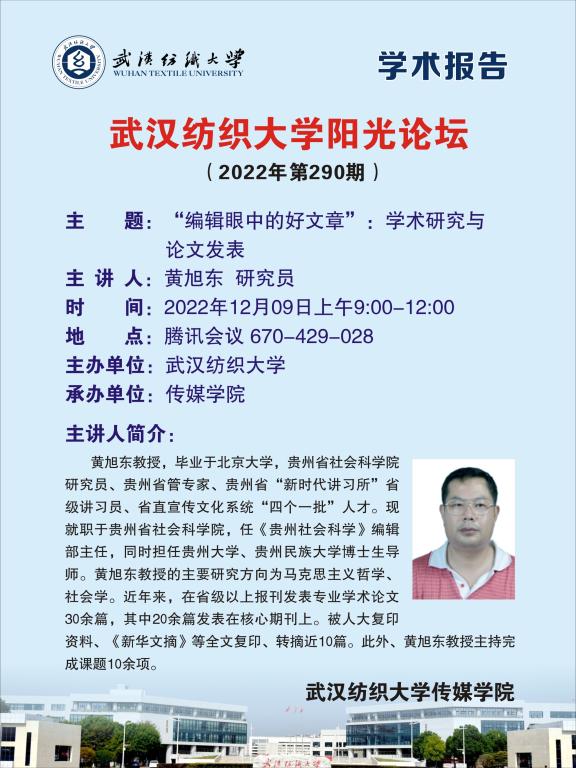 12月9日上午9时,304am永利集团第290期阳光论坛在线上成功举办。贵州省社会科公司研究员,《贵州社会科学》编辑部主任,贵州大学、贵州民族大学博士生导师黄旭东教授受邀作为主讲嘉宾,以《“编辑眼中的好文章”:学术研究与论文发表》为题,向304am永利集团师生开展了一场精彩的学术报告。经理望海军致欢迎辞,副经理马庆主持本次论坛。