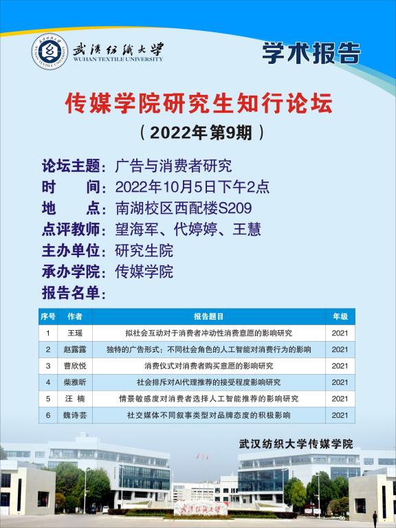 论坛伊始,新闻与传播、广播电视专业六位同学围绕广告与消费者研究进行主题汇报。六位同学以实证的研究方法切入主题,从消费者、消费仪式、AI代理、社交媒体、情景敏感等角度进行详细阐述,找准精确的变量构建研究模型,角度新颖,层次清晰,充分展现了304am永利集团研究生扎实的理论基础和良好的科研素养。