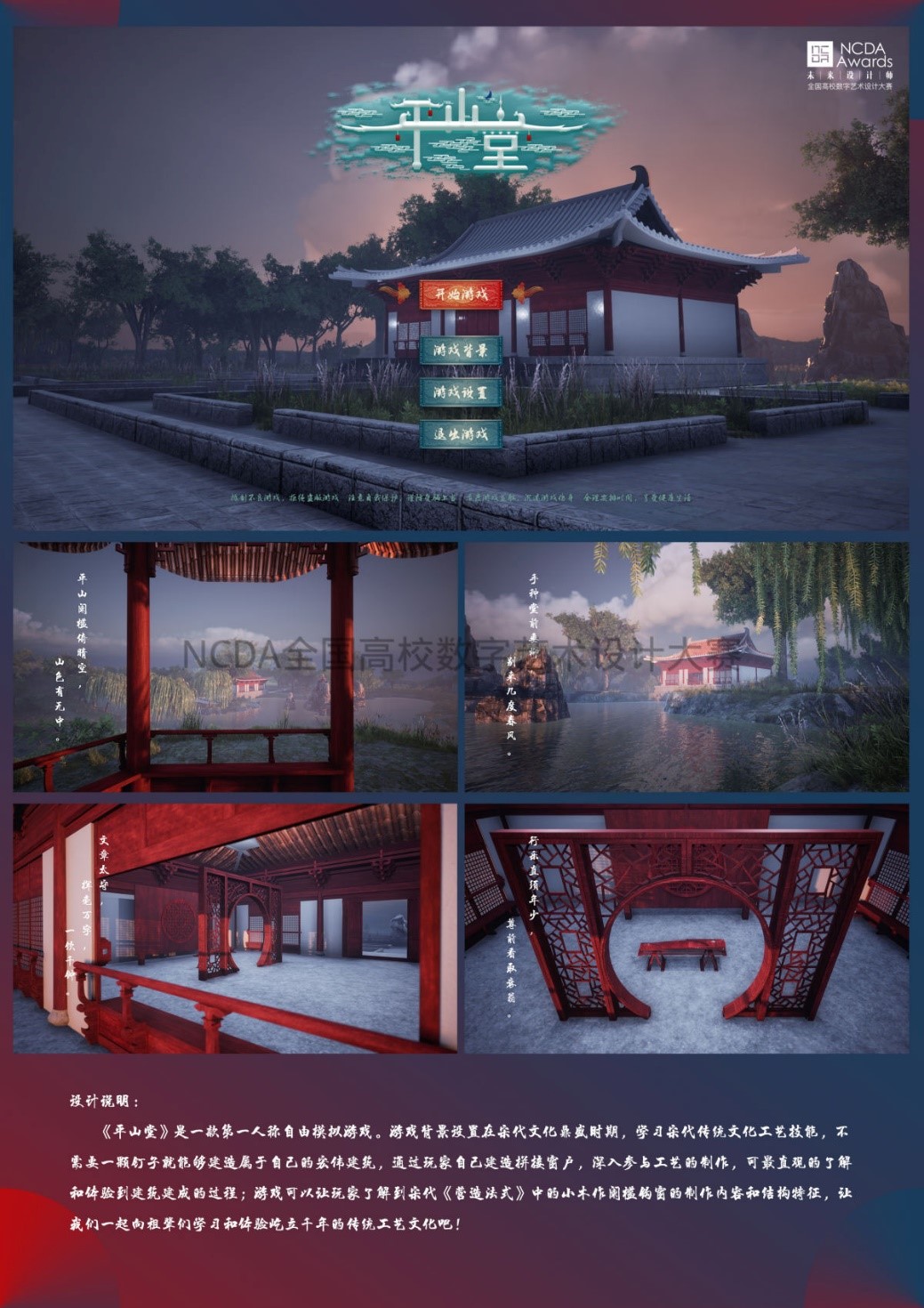 未来设计师·全国高校数字艺术设计大赛(NCDA)大赛自2012年开始,每年举办一届,是一项高规格高水平的专业赛事,拥有广泛的知名度与参与度,成为艺术设计领域专业的品牌赛事。大赛是教育部中国高等教育学会发布的《全国普通高校学科竞赛排行榜》内竞赛项目,是高校公司产品改革和创新人才培养的重要竞赛项目之一。