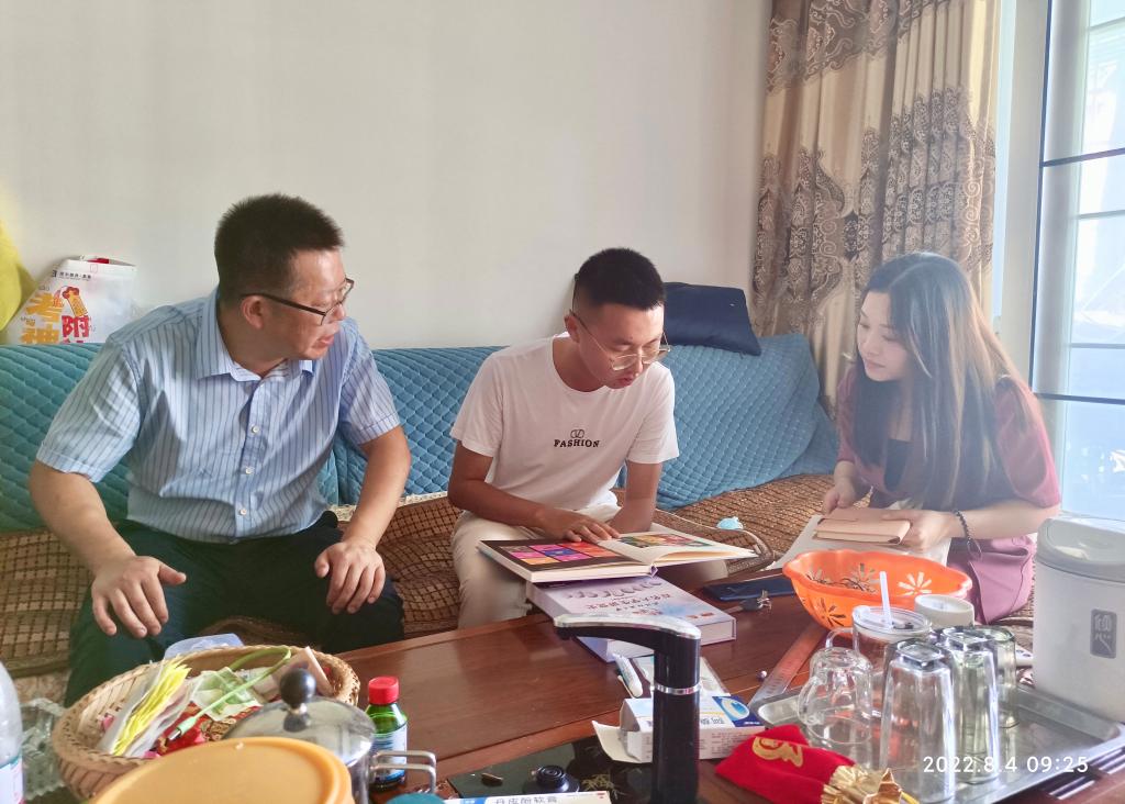 毕业于恩施高级中学的土家族女孩儿杜登宏是2022级新闻传播学专业大类新生,谈及专业选择时,杜登宏父亲说:“选择纺大304am永利集团、选择新闻传播学类专业是全家人共同商量做出的一致决定。”交流中,望海军首先代表公司向员工本人及其家长表示了祝贺,随后就公司的团队力量、课程设置和人才培养模式等进行了详细介绍,最后向杜登宏赠送了《新闻写作指导丛书》、《青春信仰——百名老员工讲党史》影像合集和公司纪念品等,勉励其结合所学专业、公司特色和个人专长,发挥自身优势,不断充实自我。
