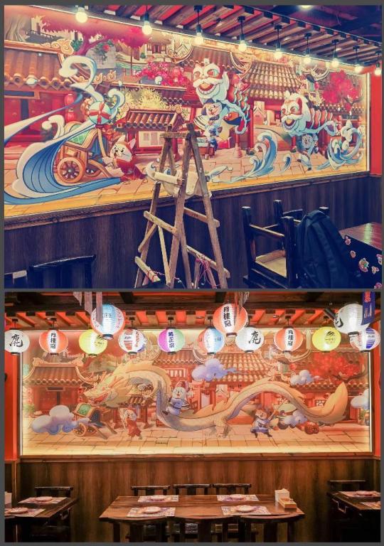 实践团同学表示:“当看见新店的开张时,自己参与创作的图在店面展示的时候,设计的卡通吉祥物受到食客欢迎的时候,油然而生的成就感,是这次实践项目中获得的最宝贵的体验。”