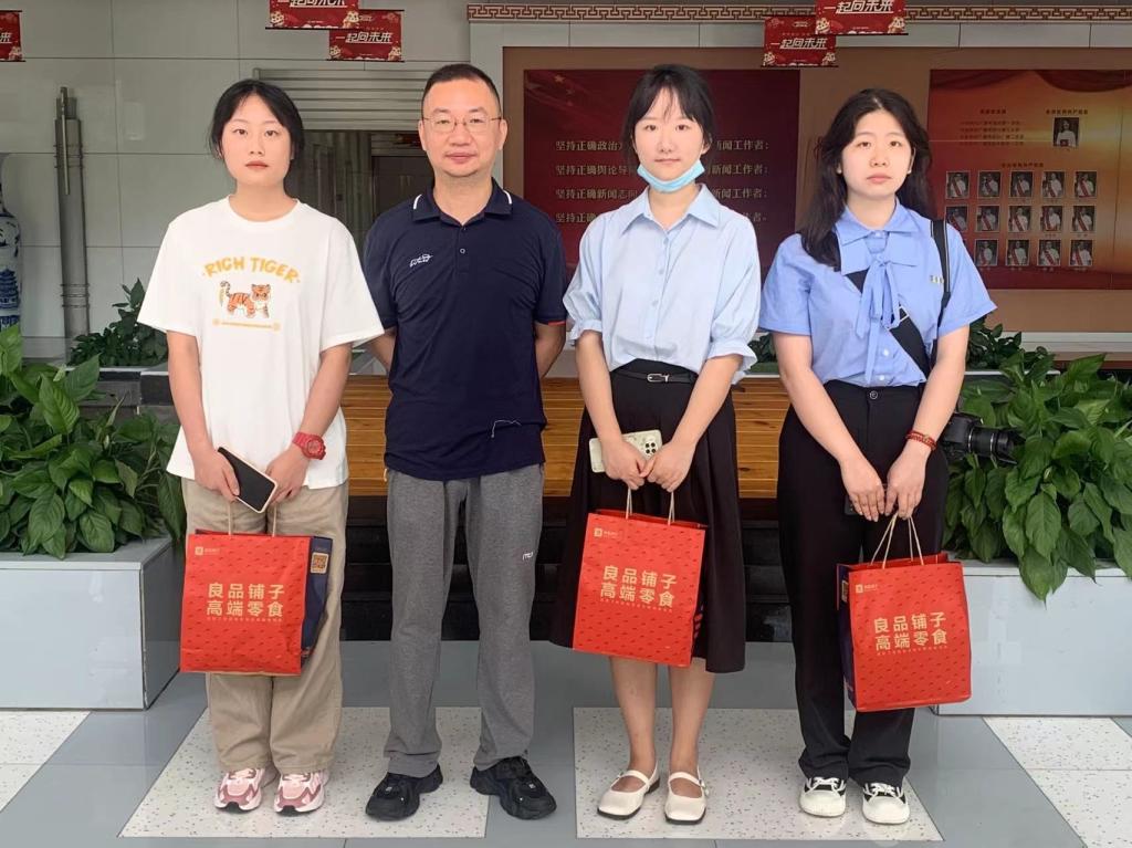 最后,马经理看望了已经报到入职的2020级新闻与传播专业硕士研究生朱倩,以及正在荆州广播电视台实习的广播电视学12001班的颜莉莉、欧阳木子同学,并为她们送上了慰问品。