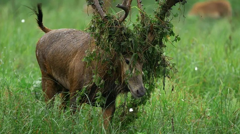 在温情之外,镜头并没有回避麋鹿种群内部的残酷竞争。当激烈的鼓点与踢踏的蹄音相和,争当“鹿王”的雄鹿以鹿角相抵、全力搏斗,我们完全能感受到温驯的外表之下,麋鹿仍有野性的激荡……这也正是一度灭绝的它们能够再次壮大、复归野性的命脉所在。