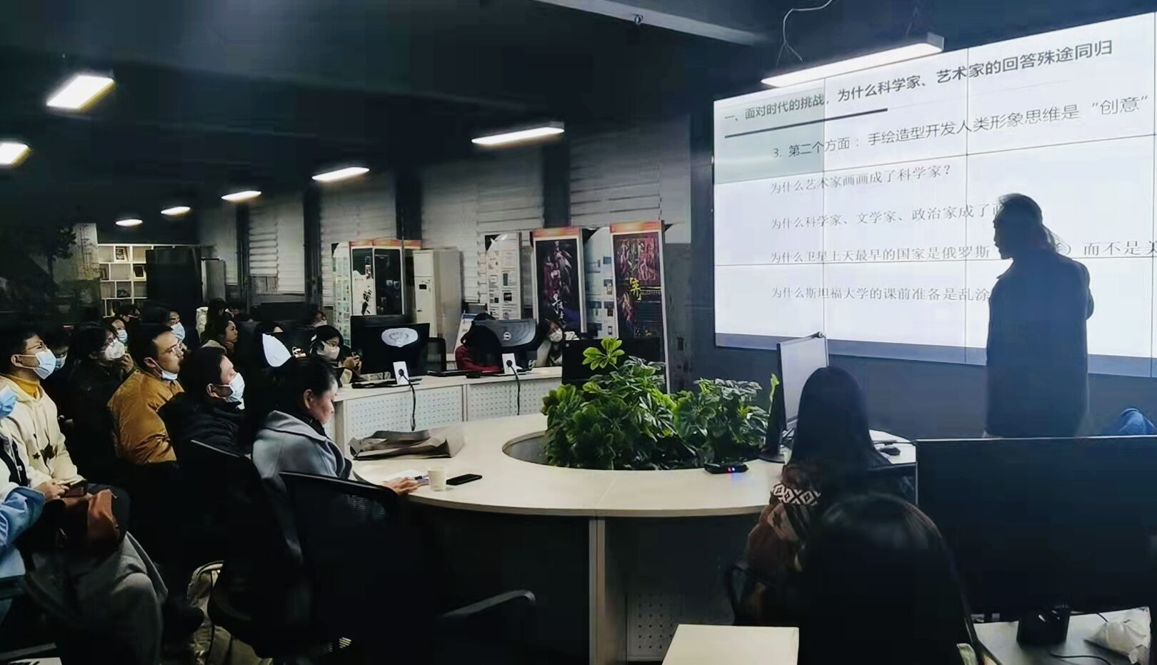讲座上,朱明健教授从面对时代的挑战为什么科学家和艺术家的回答殊途同归、科学家与艺术家的“分手”、文艺复兴时期的艺术成果推动了科学也成就了自己、如何培养未来的科学家与艺术家、科学呼唤艺术、艺术需要与科学在山顶上汇合五各方面来开展此次讲座。