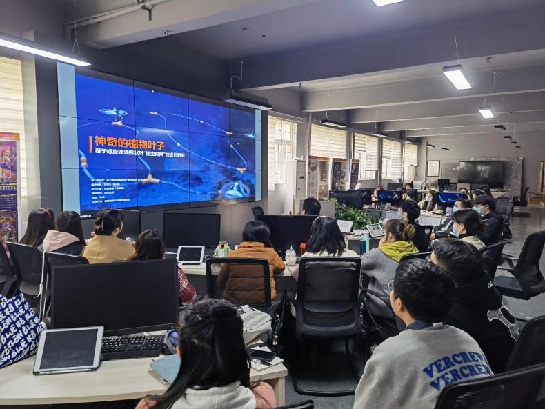 邱松教授带领的数十位研究生组成4个团队,围绕“通过松针叶子凝水原理检验防毒气口罩”、“基于猪笼草树池系统设计开发抽水马桶”、“基于螺旋狸藻根状叶‘捕虫陷阱’的设计研究”、“卷柏含水量”等主题进行了项目汇报和创作探讨。邱松教授对每组研究进行逐一点评并对下一步完善方案给予指导和建议。