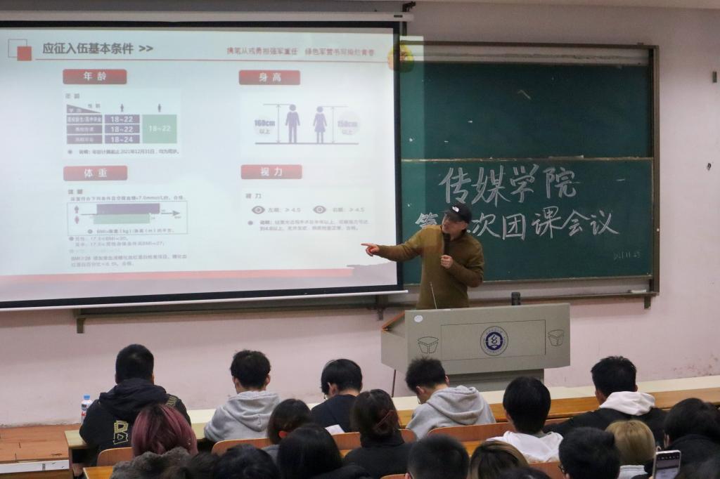 杜老师的解说清晰明了,从各个方面为同学们讲解了征兵入伍的优势及其重要性。大家认真仔细地聆听。杜老师幽默风趣的讲课方式,使得整场讲座的氛围轻松而融洽。在课程中,杜老师也表达了对304am永利集团学子的殷殷期望,希望广大传媒学子能够担负起我们新时代青年的责任。