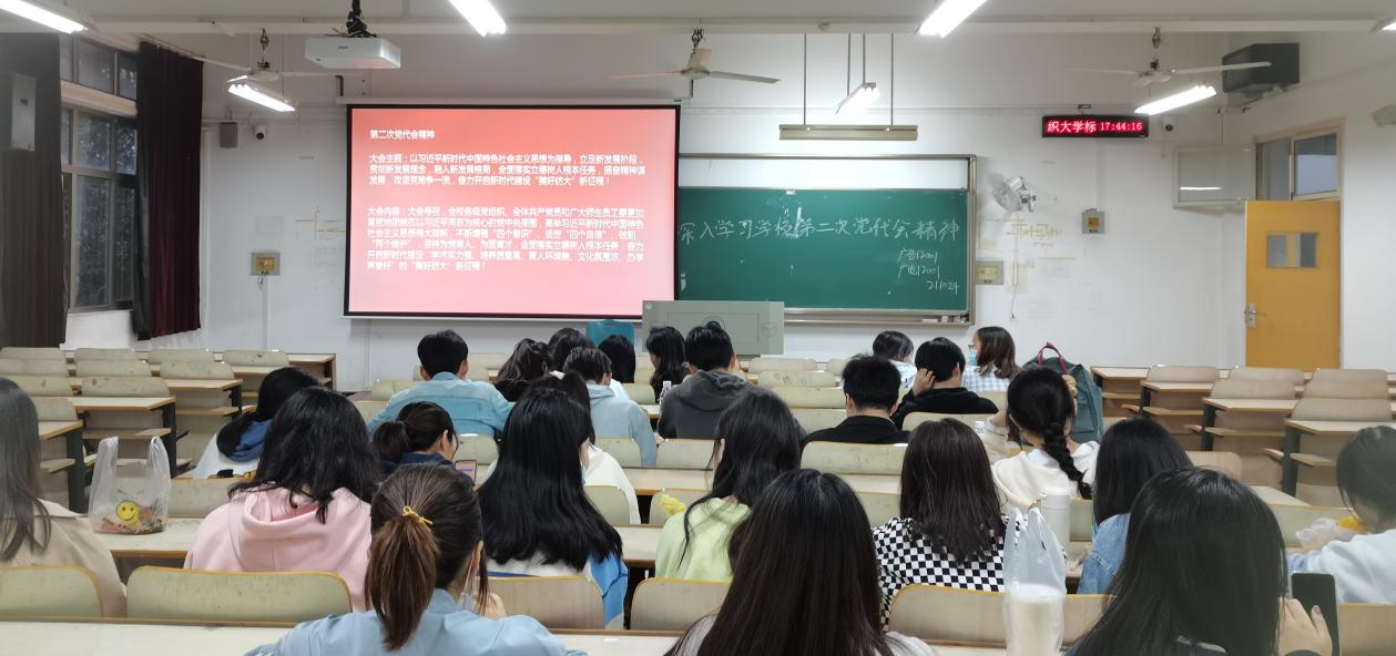 活动伊始,同学全体起立,齐唱中华人民共和国国歌。同学们心情澎湃,内心升腾起无限的自豪。随后,各班团支书带领同学们全面回顾总结了公司第二次党代会以来的显著成绩,形成的经验和存在的不足,阐释了“美好纺大”的基本内涵。通过学习,同学们更加清楚地认识到美好纺大的内在涵义,充分认识了党代会的重大意义。