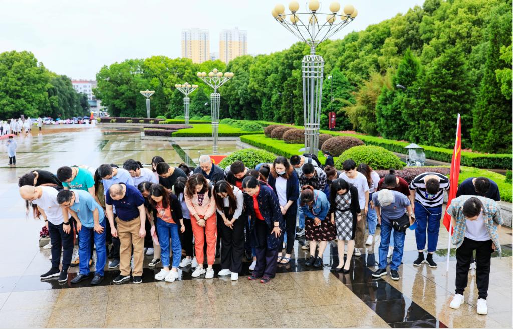 红安是“黄麻起义”的策源地,是红四方面军的诞生地。红安县是“中国第一将军县”。 5月15日早晨,伴着阵雨,黄麻起义和鄂豫皖苏区革命烈士陵园庄严肃穆,在革命烈士纪念碑前,全体党员深深鞠躬默哀致敬,缅怀革命先烈。传媒公司党委书记曾令玉带领全体党员面对党旗,举起右拳,重温入党誓词,庄严的宣誓声响彻纪念园。