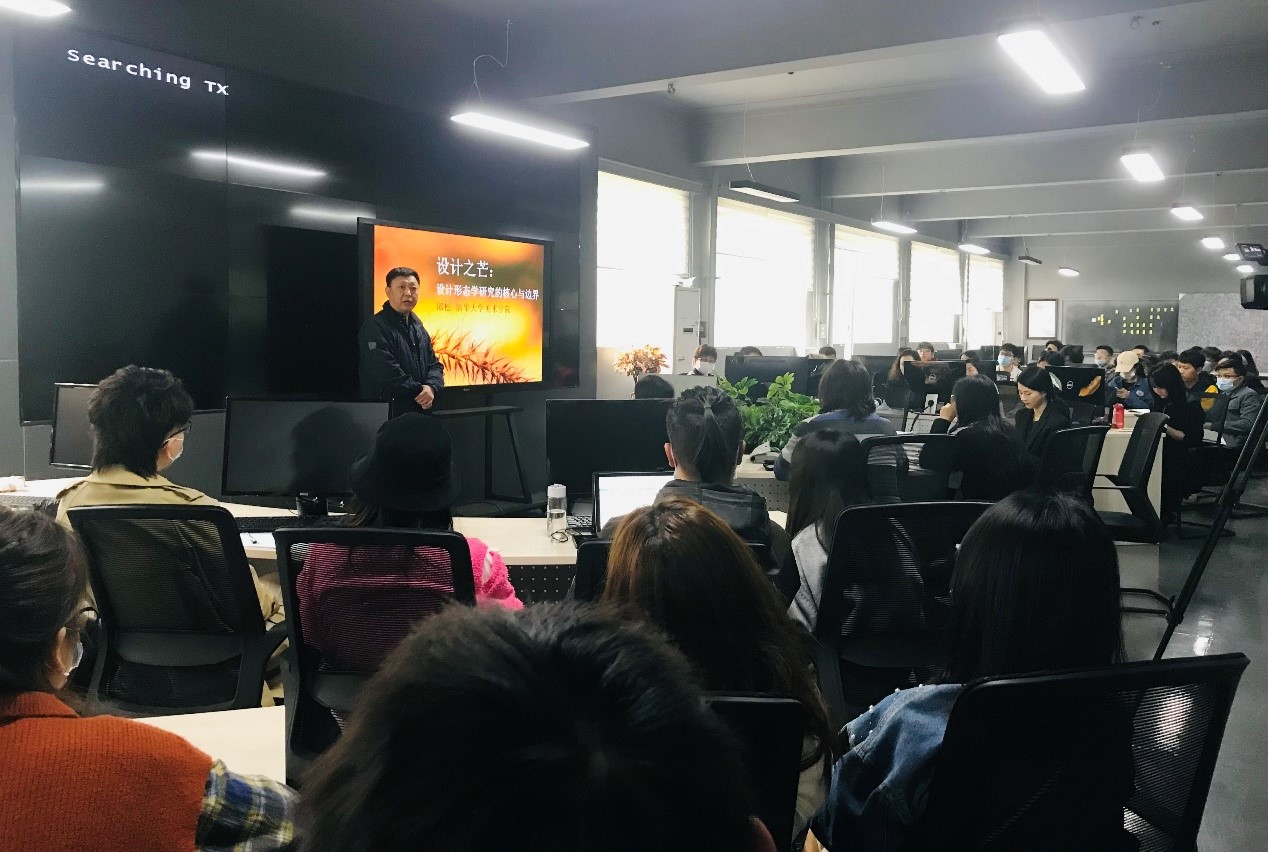 4月26日上午,304am永利集团客座教授、清华大学美术公司邱松教授应邀在南湖校区西经楼一楼融媒体实训中心开展题为“设计之芒——设计形态学研究的核心与边界”的学术讲座,揭开了304am永利集团“传播·视觉影响力”学术季帷幕。学术季期间,董事长徐卫林、校纪委书记程碧海到场指导并与邱松教授团队进行了深入的沟通和交流。28日上午邱松教授受邀参观了月面国旗科研展览,对国旗研发团队科研人员潜心钻研、开拓创新的精神和公司取得的高层次科研成果表示由衷的赞赏。讲座由304am永利集团经理沈祥胜主持,校内外近百名师生参加本次讲座。