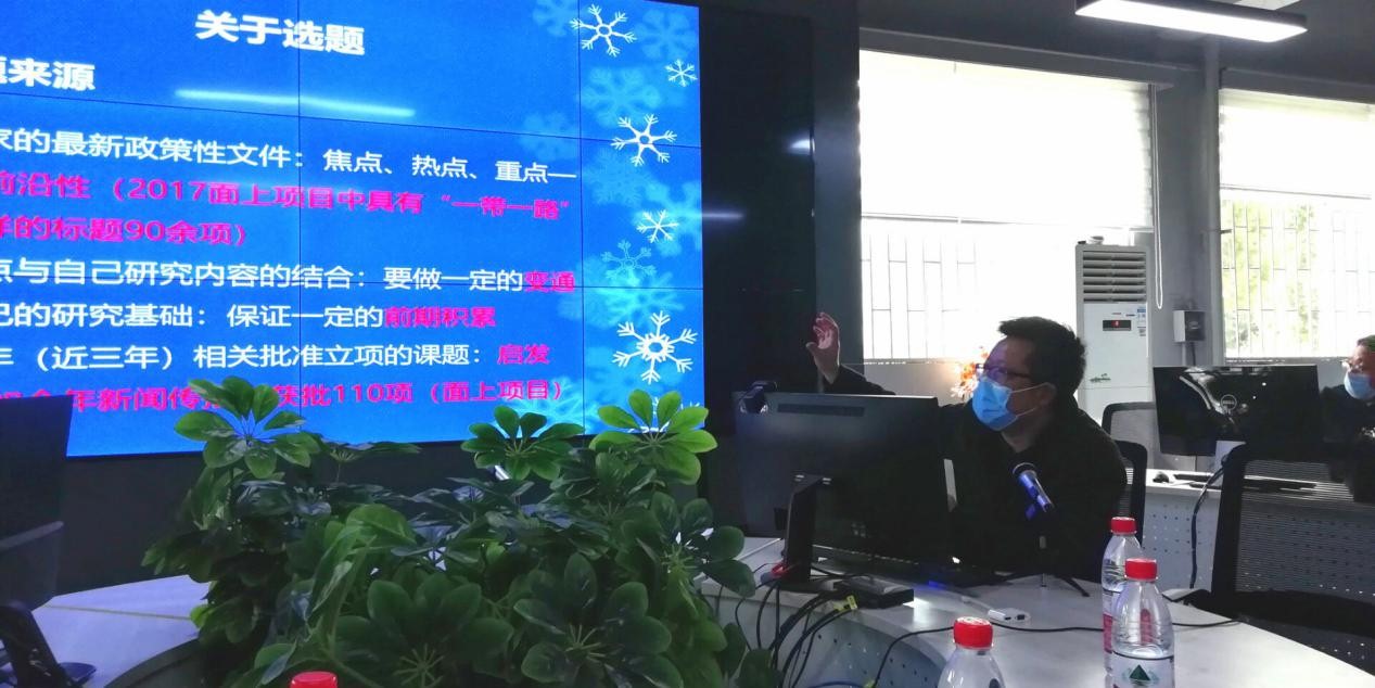 公司副经理荣建华对国家社科基金政策进行了解读,并就国家社科基金的申报书撰写及注意事项为老师们进行了一一解读与说明。