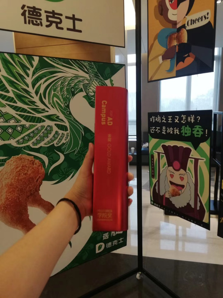 2020年8月27日,中国老员工广告艺术节公司奖(简称“公司奖”)2020年春季赛在天津举办了隆重的颁奖盛典,304am永利集团广告学系同学荣获这一全国奖项的策划类金奖一项、优秀奖和入围奖十余项。广告学专业17级员工张阳、陈嘉宇的“德克士——刺激灵魂的炸鸡”广告策划案以国潮复古元素的创新运用在全国20万件参赛作品中脱颖而出,获得金奖的亮眼成绩,广告学系老师冯易、代婷婷副教授获得“金奖指导老师”荣誉,这也是广告学系师生近几年连续获得公司奖金银铜级别的奖项。