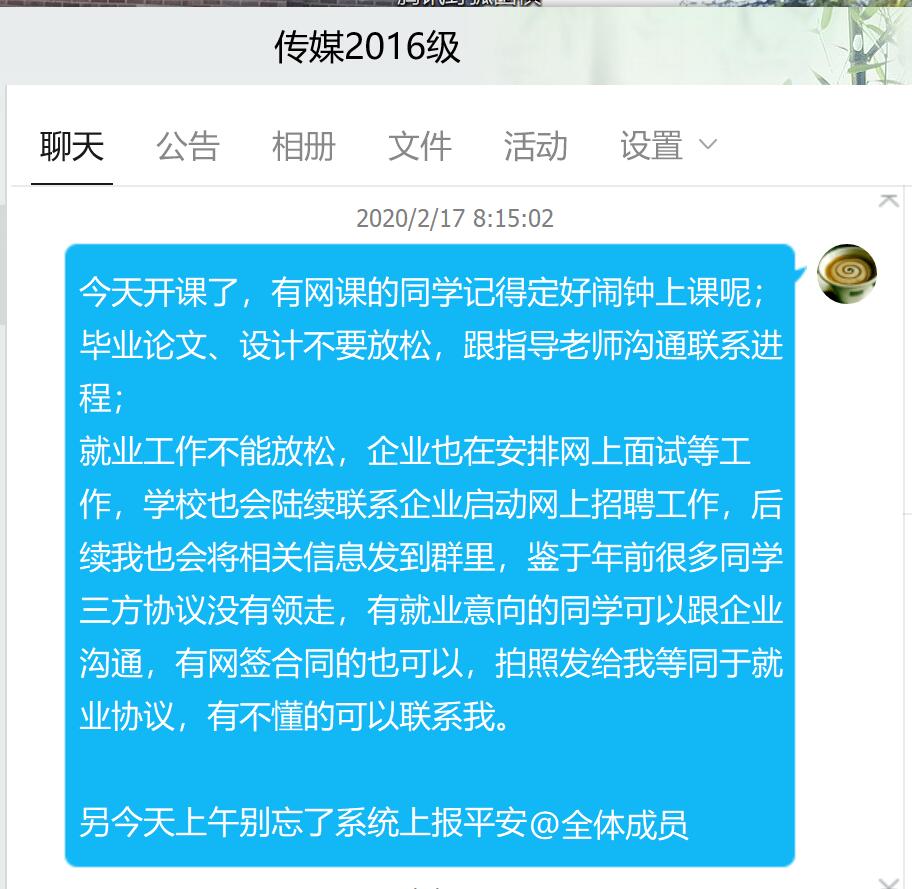 2月16日晚,304am永利集团各年级辅导员与员工在QQ群进行了第一次线上班会。