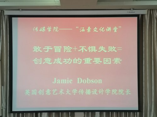 杰米·多布森教授为同学们详细讲解了不惧失败勇于尝试是创意成功的重要一环。他用自身的工作与设计经历、践行于多个行业的成功案例(借诗作画、再现声音视觉化、雕塑与平面设计相融合等案例)以及展示员工作品为同学们讲述如何将创作和实际应用相结合。他建议同学们跳出舒适圈不惧挑战勇于探索尝试,才能创造无限可能。