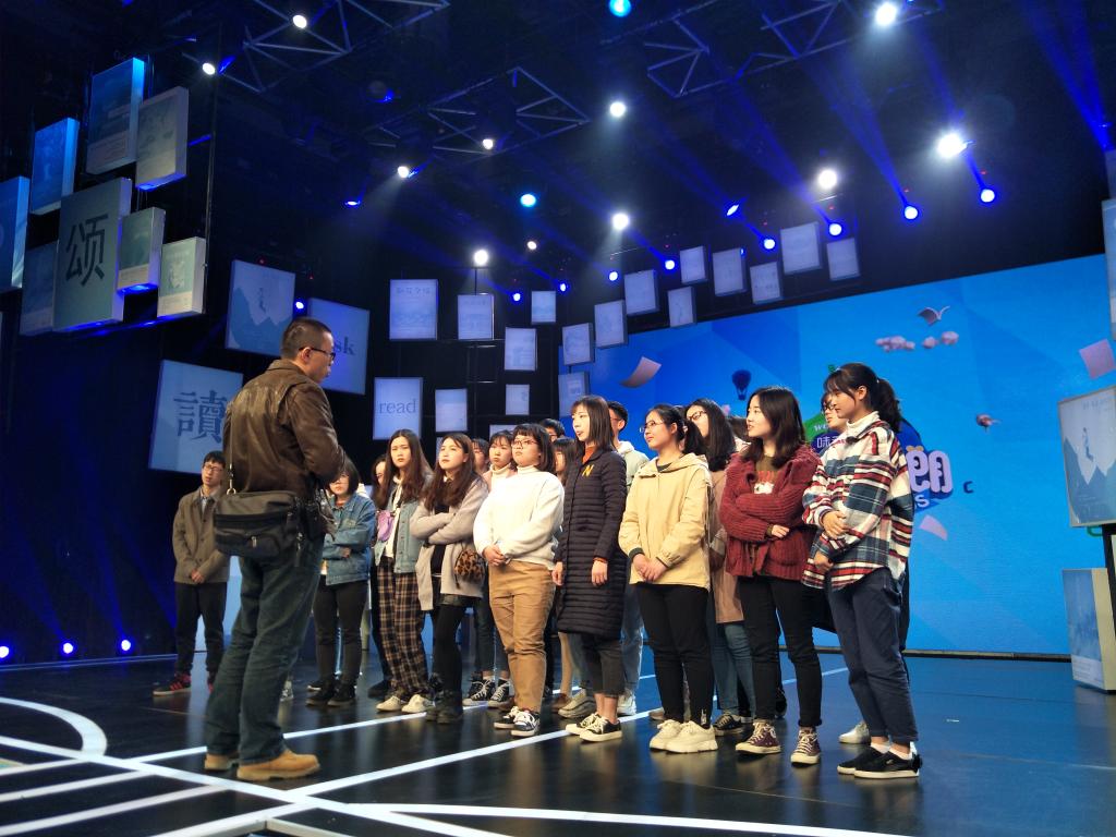 在节目现场,同学们积极配合现场工作,录制过程中仔细观察每一个过程,包括:主持、调度、编导等环节,不仅从精彩的朗诵中学习了博大精深的中国文学作品,更体会到节目准备与录制工作的不易,每一个细节都要提前做足充分准备。