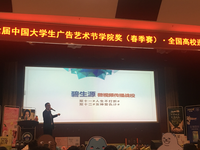 大会开始,武汉大学新闻与传播公司副经理广告系主任姚曦上台致辞,他首先对各位嘉宾的到来表示欢迎,并预祝本次活动取得圆满成功。随后,广告人文化集团副总经理向武汉大学新闻与传播公司颁发“年度广告教育推动奖”,姚曦副经理上台领奖。随后,公司奖组委会代表对此次公司奖进行了简单介绍,并向同学们强调了作品提交的有关事项,希望同学们可以发挥想象,积极创作和参与。