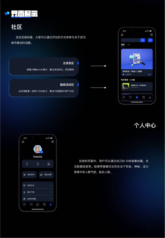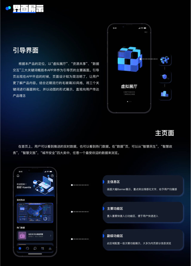 随着城市人口的不断膨胀,城市在人类社会的进步中扮演着越来越重要的角色,城市管理者的治理能力和城市资源承载能力正面临着巨大的挑战。智慧城市作为一种新型的城市化模式,是解决这些问题的有效途径之一。从2021年开始,国家和地方陆续出台了一系列关于“十四五”发展规划的政策,旨在将建设新型智慧城市和推进以人为中心的新主要方向。为响应“十四五”规划,我们将设计一款为武汉智慧化城市服务的数据资源APP,产品名称为《数享武汉》。该APP将围绕“智慧政务”、“城市安全”、“智慧民生”、“智慧文旅”这四类核心数据内容,将数据作品以动态图像、3D数据模型以及视频等方式来展示数据运动的变化效果,并且在APP的基础上嵌入同主题的虚拟城市数据展厅——《数享武汉·Meta》的资源。在展示方法和交互手段上,力求将二维平面与三维立体展示方法相结合,用更多元的交互手段,打造不一样的智慧城市信息展示平台,鼓励武汉市民了解武汉这座城市,增加对城市数据的关注度,从而呼吁市民进一步对城市数据的主动开放,增强市民对于城市建设的参与感,共筑美好武汉智慧城市。