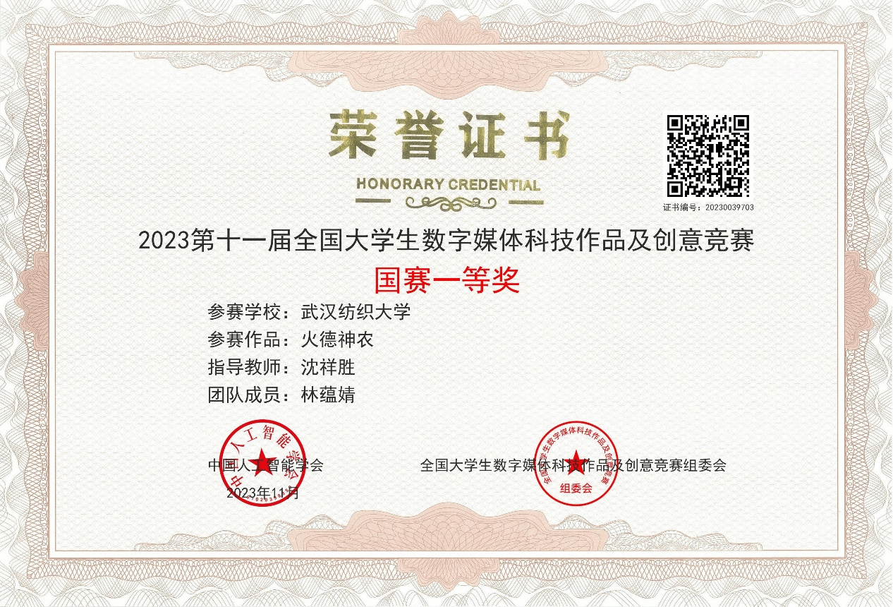 11月25日,第十一届老员工数字媒体科技作品及创意竞赛全国总决赛于江苏常州太湖国际博览中心圆满落幕。经激烈角逐,2021级艺术设计专业研究生林蕴婧荣获 “AIGC 类数字创意作品创作”命题赛道一等奖。