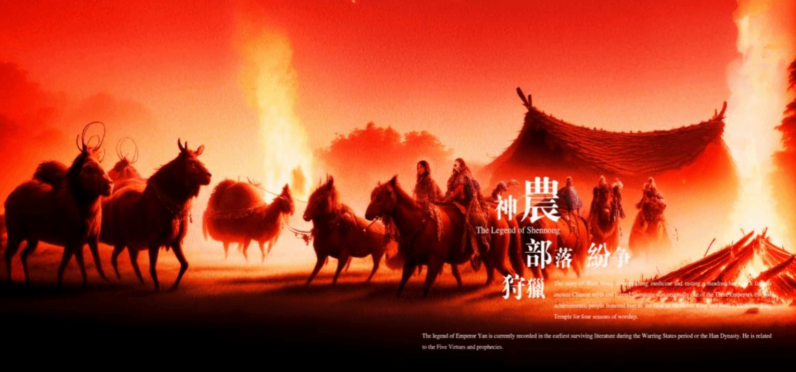 “寻火种,制耒耜,教稼穑,尝百草,创集市。”林蕴婧作品《火德神农》通过AI与动画结合的方式,选取炎帝神农作为荆楚文化的代表,以红、黑、黄色作为主色调,通过鼓点紧密的原始感音乐,配合玄鸟、龙图腾、民族服饰、光芒等元素进行展示,完整详述地介绍了神农历史、功绩、精神以及在农业、经济、医学等方面带来的巨大影响,传递丰富的历史文化内涵。