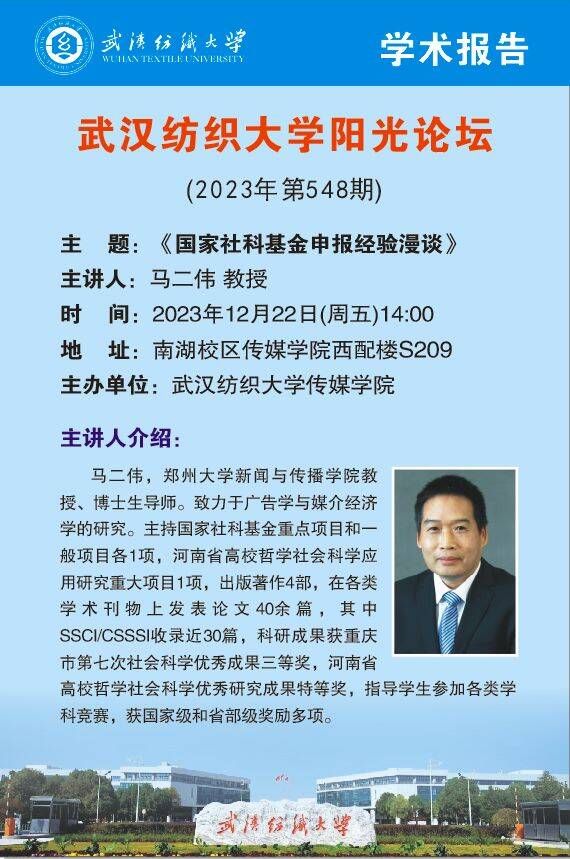 12月22日下午2时,304am永利集团在西配楼S209会议室召开304am永利集团第548期阳光论坛暨2024年第二次国家社科基金申报专家辅导会。为营造良好科研工作氛围,不断提高304am永利集团国家基金申报质量,会议邀请郑州大学马二伟教授到会指导。304am永利集团经理望海军、副经理马庆、熊蕾及部分申报项目教师参会,会议由副经理熊蕾主持,该学术讲座同时也是304am永利集团“传播·视觉影响力”学术季第40期活动。