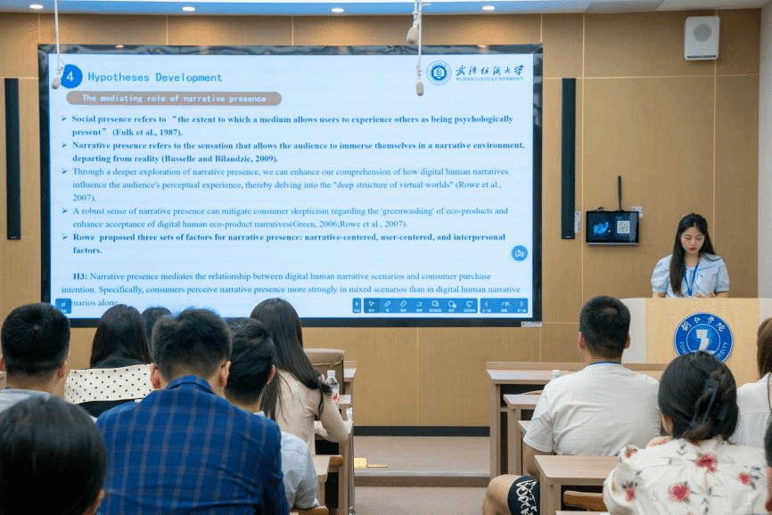 在6月22日下午的平行论坛上,公司2023级研究生宋童就其论文《Alone or Mixed? The Effect of Digital Human Narrative Scenarios on Chinese Consumer Eco-product Purchase Intention》进行了精彩分享。她详细介绍了研究主要问题、研究设计和研究发现,并与会议的点评专家进行了深入讨论和交流。专家们对该研究成果给予了高度评价,并提出了富有建设性的修改建议。