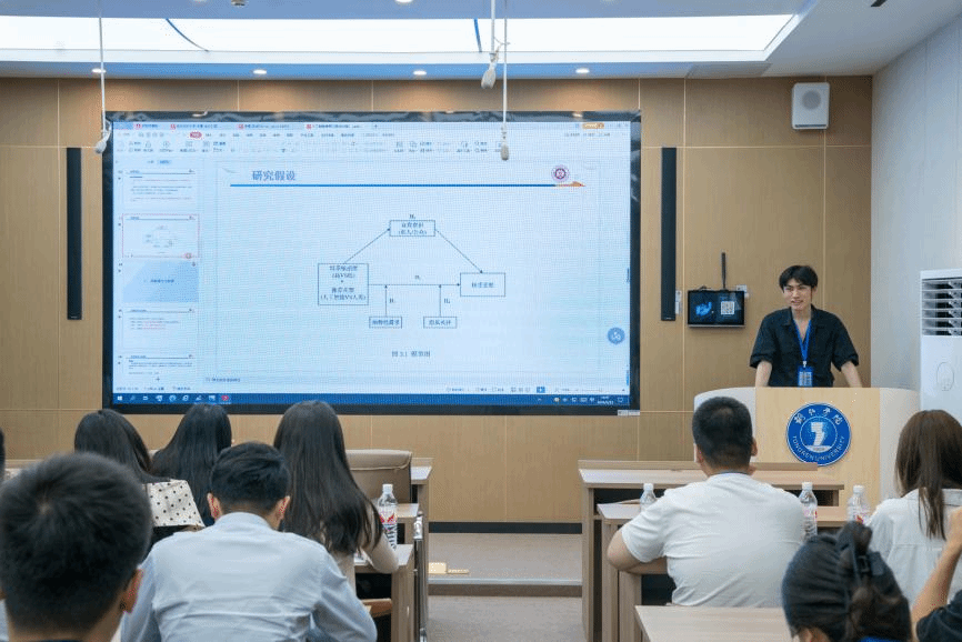 随后,2023级研究生王思捷分享了题为《情景敏感度对消费者选择人工智能推荐的影响研究》的论文,展示了其研究成果和发现。与会点评专家对其研究问题的创新性表示了肯定,并就论文修改提出了详尽的指导性意见。
